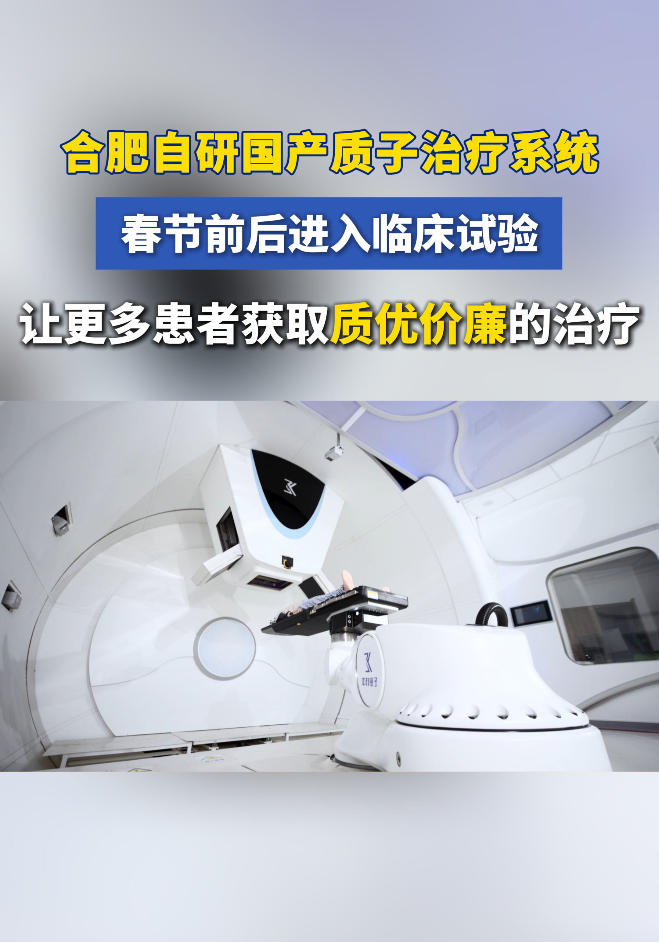 合肥自研国产质子治疗系统春节前后进入临床试验 让更多患者获取质优价廉的治疗 1月8日,合肥离子医学中心二层质子放疗病区正式启用,中心总床位扩增至94张。在二层质子放疗病区启用之际,合肥离子医学中心备受关注的二期首台套国产质子治疗系统也传来了新消息。